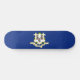 This design features the flag of Connecticut, which is the southernmost state in the New England region of the northeastern United States. It is bordered by Rhode Island to the east, Massachusetts to the north, New York to the west and Long Island Sound to the south. According to most sources, it is part of New England, although large portions of it are often grouped with New York and New Jersey as the tri-state area instead. The state is named for the Connecticut River which approximately bisects the state. The name "Connecticut" is derived from the Native American (Mohegan-Pequot) word for "long tidal river". The official nickname of Connecticut is the "Constitution State", but it is also known as the "Nutmeg State", the "Provisions State" or the "Land of Steady Habits". Its Latin motto is "Qui transtulit sustinet", which means "He who transplanted sustains". The flag of the state of Connecticut contains a baroque shield with three grapevines, each bearing three bunches of purple grapes on a field of royal blue. The capital of Connecticut is Hartford and the state's most populous city is Bridgeport. Other major cities in Connecticut include New Haven, Stamford, Waterbury, Norwalk, Danbury, New Britain, Bristol, Meriden, West Haven and Milford.
