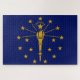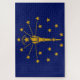 This design features the state flag of Indiana, which is is a U.S. state in the Midwestern and Great Lakes regions of North America. It borders Lake Michigan to the northwest, Michigan to the north, Ohio to the east, the Ohio River and Kentucky to the south and southeast, and the Wabash River and Illinois to the west. Indiana was admitted to the United States as the 19th state on December 11, 1816. The flag of Indiana was designed by Paul Hadley and officially adopted by the state of Indiana in 1917. The flag consists of a gold torch that represents liberty and enlightenment; the rays around the torch represent their far-reaching influence. The nineteen stars represent Indiana's place as the nineteenth state to join the United States. The thirteen stars in the outer loop symbolize the original Thirteen Colonies, the five inner stars represent the next five states added to the Union, and the one large star above the torch represents Indiana. The capital city of Indiana is Indianapolis, which is also the largest city in the state. Other major cities in Indiana include Fort Wayne, Evansville, South Bend, Carmel, Fishers, Bloomington, Hammond, Gary, Lafayette, Muncie, Noblesville, Terre Haute, Greenwood, Kokomo, Anderson, Elkhart, Mishawaka and Lawrence.