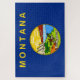 This design features the state flag of Montana, which is a state in the Northwestern United States. The western half of Montana contains numerous mountain ranges. Smaller mountain ranges are found throughout the state. In all, 77 named ranges are part of the Rocky Mountains. The eastern half of Montana is characterized by western prairie terrain and badlands. Montana is bordered by Idaho to the west, Wyoming to the south, North Dakota and South Dakota to the east and the Canadian provinces of British Columbia, Alberta and Saskatchewan to the north. Montana has several unofficial nicknames, such as "Big Sky Country" and "The Treasure State", and slogans that include "Land of the Shining Mountains" and "The Last Best Place". The state motto of Montana is "Oro y Plata", which is Spanish for "Gold and Silver". Nearly 13 million tourists annually visit Glacier National Park, Yellowstone National Park, Beartooth Highway, Flathead Lake, Big Sky Resort and other attractions in Montana. The capital city of Montana is Helena, while the largest city is Billings. Other major cities in Montana include Missoula, Great Falls, Bozeman, Butte, Kalispell, Havre, Anaconda, Miles City, Belgrave, Livingston, Laurel, Whitefish, Lewistown, Sidney, Glendive, Columbia Falls, Polson, Hamilton, Dillon, Hardin, Shelby, Glasgow, Deer Lodge, Cut Bank, Libby, Wolf Point, Conrad, Colstrip, Red Lodge, Malta and East Helena.