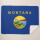 This design features the state flag of Montana, which is a state in the Northwestern United States. The western half of Montana contains numerous mountain ranges. Smaller mountain ranges are found throughout the state. In all, 77 named ranges are part of the Rocky Mountains. The eastern half of Montana is characterized by western prairie terrain and badlands. Montana is bordered by Idaho to the west, Wyoming to the south, North Dakota and South Dakota to the east and the Canadian provinces of British Columbia, Alberta and Saskatchewan to the north. Montana has several unofficial nicknames, such as "Big Sky Country" and "The Treasure State", and slogans that include "Land of the Shining Mountains" and "The Last Best Place". The state motto of Montana is "Oro y Plata", which is Spanish for "Gold and Silver". Nearly 13 million tourists annually visit Glacier National Park, Yellowstone National Park, Beartooth Highway, Flathead Lake, Big Sky Resort and other attractions in Montana. The capital city of Montana is Helena, while the largest city is Billings. Other major cities in Montana include Missoula, Great Falls, Bozeman, Butte, Kalispell, Havre, Anaconda, Miles City, Belgrave, Livingston, Laurel, Whitefish, Lewistown, Sidney, Glendive, Columbia Falls, Polson, Hamilton, Dillon, Hardin, Shelby, Glasgow, Deer Lodge, Cut Bank, Libby, Wolf Point, Conrad, Colstrip, Red Lodge, Malta and East Helena.