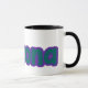 This custom coffee mug features a design that displays the word "Arizona" in a Boldoa print font and purple colored letters turquoise outline in this custom state pride jersey style theme. The rim & handle are glazed in matching colors available in 11-ounce or 15-ounce sizes microwave and dishwasher safe ceramic construction.