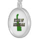I chose gold plated so that the metal would not react with my skin oils and perspiration. But, I changed the necklace from the gold plated one to a sterling silver. My skin cells will tarnish the silver. But it will not look as bad if some portion of the gold plated necklace somehow became compromised. Zazzle did a find job turning the picture into a pendant for me. As you can see, the colors and the printing of the final product, match the preview. The picture I took is not very clear. But I am pleased with the product I received.