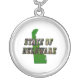 State of Delaware Picture Text & Map Outline Round Silver Plated Necklace