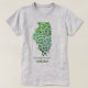 State of Illinois Silhouette Hearts & Hometown T-Shirt - The iconic shape of Illinois is filled with hearts of varying sizes. The colorway is green through dark green in a variegated pattern. Underneath the state outline is a place for your hometown. You can put any town in that spot -- perfect for those that never get to see their hometown on a map! Even the little unincorporated villages can be represented on your design. A great shirt to show your pride and love for the state you were raised in, live in or just love.