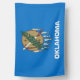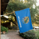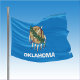 The state of Oklahoma flag has a rectangular field of sky blue on which an Osage war shield is placed with six crosses and seven pendant eagle feathers above the word 'Oklahoma' in white. A calumet (peace pipe) and an olive branch are superimposed onto the war shield's crosses. Note that other stores might have the text reversed on the back side of the flag, but at Traveldestinations Designs, it is double-sided, ensuring that all text appears correctly on both sides.