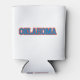 This custom can cooler features a design that displays the word "Oklahoma" in a Boxing print font with aqua blue letters orange colored outline in this custom state pride jersey style theme. Our can coolers fits any standard 12 oz cans and is customized on all sides including the bottom and made with high-density open-cell polyurethane collapsible foam material for easy storage.