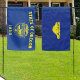 Flag bracket is super easy to assemble. There is a prong fork that goes into the ground. I dug a shallow hole to bury the prongs and still had enough height. Reinforced stitching on for the flag opening. Colors are true to the website. Mona Lisa's sign with the text is easy to read, the text is clear and not blurry.