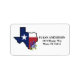 Brighten up your envelopes and personal items with these awesome Texas return address labels. The Texas state flag is featured in the Texas shape along with the beautiful state flower, the Bluebonnet.
