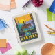 I was super excited when I got my cover in. It is attached by a magnet across the edge. I don’t think it will be very protective but it is very cute. I’m going to keep my iPad in a sleeve and use this face cover while I have it out. It folds to create a tilt for better viewing and to keep the iPad at a slight angle for typing. The colors are bright and it is fun. I’ve really enjoyed it. The personalization looks like amazing. It is the same color as the picture and is the same brightness. Well done! Very nice.