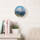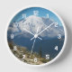 Decorate a living space with this stylish wall clock with white numerals and features the scenic photo image of a stately Mount Rainier, Washington. Select your clock size and style. Use to decorate a living room, dining room, kitchen, bedroom, or any other room.