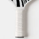 The color is black, very clean and sharp looking with custom lettering. He loves it! White lettering on a black racquet, looks perfect and clean. Classy.