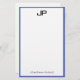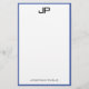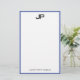 Modern Hand Script Monogrammed Simple Template Personalized Medium Blue White Stationery Paper.
