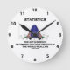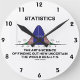 Wry stats humor clock featuring bell curve (normal distribution curve, Gaussian curve) and the definition of statistics: "The Art & Science Of Finding Out How Uncertain The World Really Is". No need to be a statistician or statistics major to enjoy!