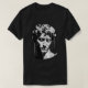 My 11 yo wore adult XL (5’7” 165#). The 8yo is small framed. She wore adult small and tied it in the back. Grandma wore adult large with long sleeve shirt underneath. Tall girl adult medium. Dark haired male adult large. Good quality dark Heather gray, Gildan brand shirt. -it was next up from basic choice and cost about $20 per shirt. Not too thick or thin. Washed and dried well, no major shrinkage. Not see-through. Can wear a bra under it fine. Screen print is just as shown and well done, front and back.