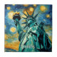This design shows a closeup of the Statue of Liberty and is done in an impressionist style with a wink towards Van Gogh's Starry Night.