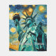 This design shows a closeup of the Statue of Liberty and is done in an impressionist style with a wink towards Van Gogh's Starry Night.
