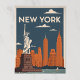 Bold 1930s-style of New York featuring Statue of Liberty and city skyline.
