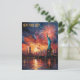 Anyone would love to receive this travel postcard featuring an illustration of the Statue of Liberty and fireworks in New York City!