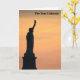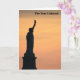The front of this card has an image of the Statue of Liberty silhouetted against a beautiful orange sky, and the inside has the poem by American poet Emma Lazarus called The New Colossus: Not like the brazen giant of Greek fame, With conquering limbs astride from land to land; Here at our sea-washed, sunset gates shall stand A mighty woman with a torch, whose flame Is the imprisoned lightning, and her name Mother of Exiles. From her beacon-hand Glows world-wide welcome; her mild eyes command The air-bridged harbor that twin cities frame. "Keep, ancient lands, your storied pomp!" cries she With silent lips. "Give me your tired, your poor, Your huddled masses yearning to breathe free, The wretched refuse of your teeming shore. Send these, the homeless, tempest-tost to me, I lift my lamp beside the golden door!" She wrote the poem in 1883 to raise money for the pedestal's construction.