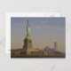 The much photographed Statue of Liberty looks proudly out over the River Hudson looking back towards Lower Manhattan, New York City. This shot shows the towers of New Jersey, across the river from NYC. March 2008