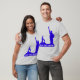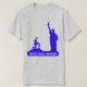 Statue of Liberty and kneeling boy silhouette in royal blue color with words of truth, peace & harmony T_Shirt. Text can be personalized.