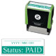 This simple rubber stamp design features the messages "Status: PAID" and a line where a payment date can be written. It could perhaps be used to indicate that a bill or invoice has been fully paid.