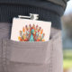 Well made flask, a little better than I had expected. Flask came in clear plastic box which gave it a nice presentation when I took it out of the zazzle packaging. Image is not printed on flask but on sticker. Don't know how this will hold up I haven't used it yet. This would make a Great gift! I plan to purchase more for friends! Cheers. I thought a little brighter than computer. Very crisp, writing wasn't