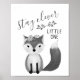 Monochrome Nursery Wall Art with watercolour fox in the middle and decorative script saying stay clever little one