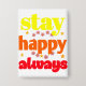 Spread positivity wherever you go with this bright and cheerful "Stay Happy Always" design. Featuring bold colorful text with stars and floral elements, this design is perfect for T-shirts, mugs, hoodies, and more. A great gift idea to lift the spirits and bring a smile!