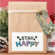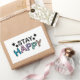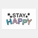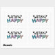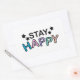 The words “Stay happy” with multicolor letters and cute stars - good vibes and fun!