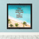 An uplifting motivational canvas print featuring the quote “Stay positive, work hard and make it happen” over a bright and calming beach background.
