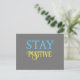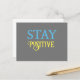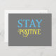 "Stay positive" – A reminder that even in the face of challenges, a positive outlook can brighten the darkest days. This postcard serves as a little boost of optimism to carry with you wherever you go.