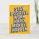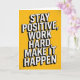 Send a powerful, no-nonsense message of motivation with this high-impact card! The quote, "STAY POSITIVE, WORK HARD, MAKE IT HAPPEN," is rendered in huge, stacked white block letters with a strong black drop shadow, popping off a vivid, sunny yellow background. This design is perfect for encouraging hustle culture, celebrating a new venture, motivating a student through finals, or pushing a business client to achieve their goals. The bold, graphic style is gender-neutral and makes a strong statement of determination and drive.