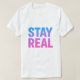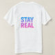 A clean and modern T-shirt design featuring the bold phrase “STAY REAL” in stylish typography, perfect for young trendsetters who value authenticity. Simple yet impactful, this minimal design makes a strong statement while keeping the look fresh and versatile for everyday wear.