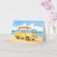 This greeting card features a watercolor style portrait of a yellow hippie van with a surf board on top and the message "stay salty" written on the front bumper.