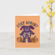 The message on the front of this card reads STAY SPOOKY above a cute illustration of a patchwork style stuffed dog with a skeleton visible on his belly and a couple of patchwork pumpkins. The inside message can be customized with your own greeting so you can create the perfect card for Halloween or any occasion.