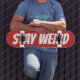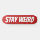 STAY WEIRD bold text custom design skateboard deck. Cool wooden skate board design for boys and girls. Fun Birthday gift idea for kids. Personalize with your own unique name, funny quote or monogram letters. Unique Birthday gift idea for skater son, grandson, nephew, cousin, daughter, sister, brother, friends, boyfriend, girlfriend etc. Big letter typography design with customizable red background color. Also nice as Christmas Holiday present for children and adults. Upload your own skateboarder logos or graphics optionally.