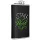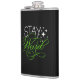 Well made flask, a little better than I had expected. Flask came in clear plastic box which gave it a nice presentation when I took it out of the zazzle packaging. Image is not printed on flask but on sticker. Don't know how this will hold up I haven't used it yet. This would make a Great gift! I plan to purchase more for friends! Cheers. I thought a little brighter than computer. Very crisp, writing wasn't