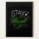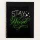 Welcome to our unique hand-lettered design, crafted with introverts, geeks, nerds and free spirits in mind, “Stay Weird” celebrates individuality with a bold statement. The word “Stay” stands out in crisp white block letters, while “Weird” dances in vibrant green flourished script, adding a touch of whimsy. Whether you’re embracing your inner geek or honoring your introverted nature, this design is a perfect expression piece.