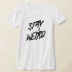 The material is a great quality that is hard to find with most tee shirts. Fabric was not see-through or thin at all, but was also very soft and comfortable. The shirt description states that it runs a little small, so I sized up one size for a perfect fit! I would definitely buy this type of tee shirt again because I love the fit and high quality fabric that I cannot find anywhere else. The printing was perfect and just as pictured. Loved the cute quote and really enjoy the tee in both the quality and design. I love quirky typography designs and funny quotes and I am extremely pleased with the overall quality and value I get at Zazzle!