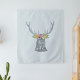 Our sweet watercolor deer silhouette is adorned with a watercolor flower crown, with the words "stay wild" in white calligraphy script.