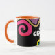 Fun retro-nostalgia 60s "stayed groovy" coffee mug featuring not-quite psychedelic but loud notebook-doodle style design and your choice of color scheme, perfect for old hippies or groovy geezers.