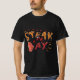 This t-shirt design is a fun declaration for any grill master or meat lover with the message "Steak My Day" displayed in a playful multicolor scheme. The design is full of flavor!.