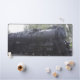 A desk mat featuring a photo of a steam engine.