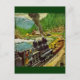 Vintage illustration of a steam engine on train tracks near the western American mountains