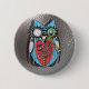 Steam Punk Funny Mechanical Owl Red Blue Pinback Button