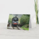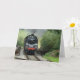 The picture on this greeting cards shows a steam train on its' approach to Oakworth Station. For those who can remember the original movie of The Railway Children, Oakworth Station was used as one of the filming locations and it still retains its' old charm today. On the back of the card is a picture of the platform, with the 'Oakworth' name plate, and the station office.