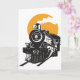 Travelling by train is wonderful and travelling in an old steam train is even better. A steam train is the classic of all train types and reminds us all of how train travel used to be. This design showcases a great looking steam train looking front on. The train has smoke blowing out the top. This steam train design looks great on these greeting cards