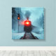 Make a bold statement with this spectacular wall art featuring intense red and blue color contrast that demands attention. A powerful steam locomotive approaches through winter mist, its brilliant red headlight creating a mesmerizing glow against cool blue snow and forest. The matching red railway signal adds perfect compositional balance while snow-covered tracks lead the eye into the atmospheric distance. This dramatic print combines vintage railway romance with contemporary color impact, making it perfect for modern interiors seeking a bold focal point. Ideal for living rooms, offices, game rooms, or any space that needs striking wall decor with personality.