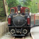 Wales, the land of the little steam trains. A beautifully preserved red train and green carriages full of passengers.